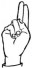 На ћирилици написано ЛАБУДА СЕБИЋ састоји се из 11 слова [?]. Исписано ћириличном једноручном азбуком за глувонеме: